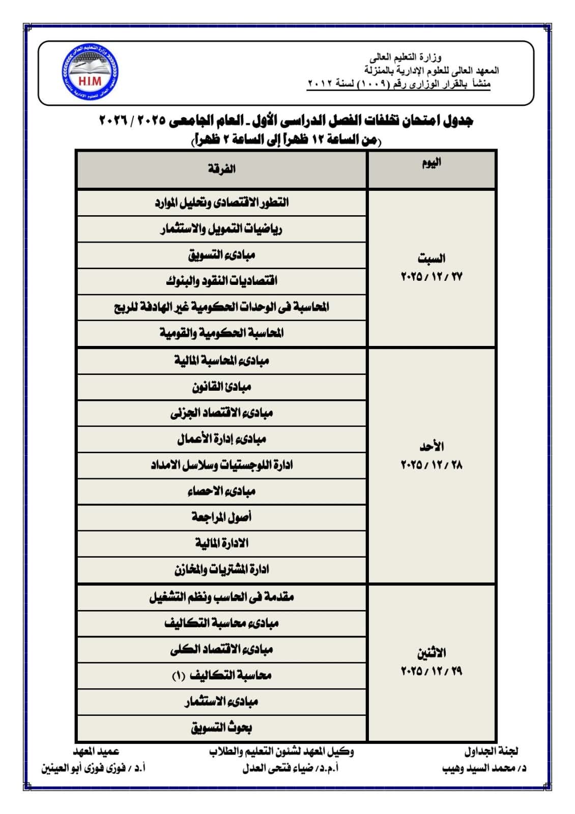 يُعلن المعهد العالي للعلوم الإدارية بالمنزلة 📅 أن يوم السبت الموافق 1 / 11 / 2025سيكون إجازة رسمية 🏛️ وذلك...