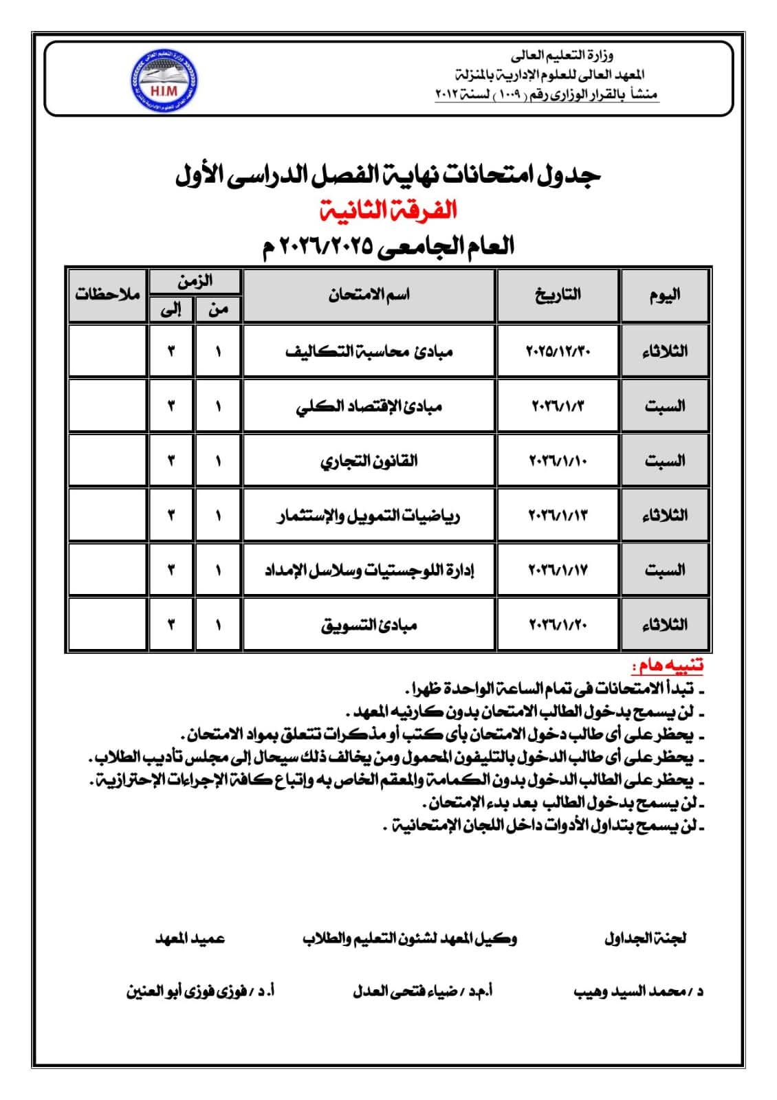 ▪️الجداول الدراسية للفصل الدراسى الأولللعام الدراسى 2025 / 2026 . ✨ خالص الأمنيات لطلابنا الأعزاء بالتوفيق والنجاح ❤️ تجارة_المنزلة 🔝👌🏻