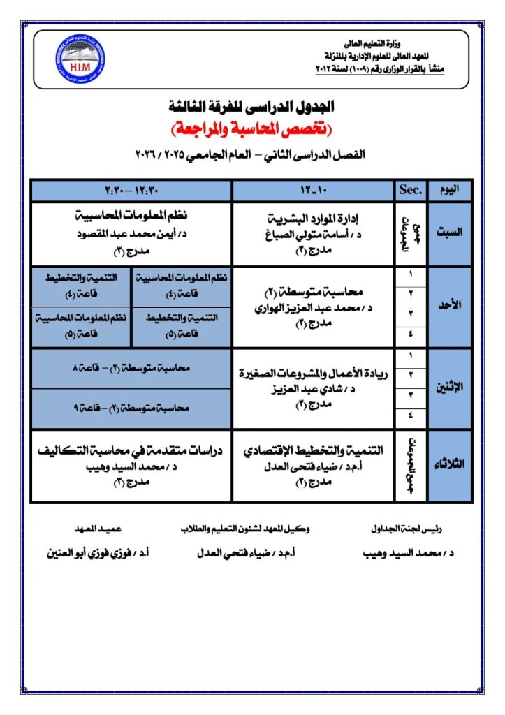 🔻 حفل تخرج الدفعة العاشرة للمعهد العالي للعلوم الإدارية بالمنزلة،والدفعة الثانية (الفضية) للمعهد العالي للهندسة والتكنولوجيا بالمنزلة – 2025 🔝 تحت رعاية:▪️ المحاسب محمد رضوان القيراني (رئيس مجلس الإدارة)🎓 في يوم استثنائي وتاريخي:شهد كلٌّ من:▪️ المعهد العالي للعلوم الإدارية بالمنزلة▪️ المعهد العالي للهندسة والتكنولوجيا بالمنزلةاحتفالًا مميزًا بتخريج:✔️ الدفعة العاشرة للمعهد التجاري✔️ الدفعة الثانية للمعهد الهندسيوذلك