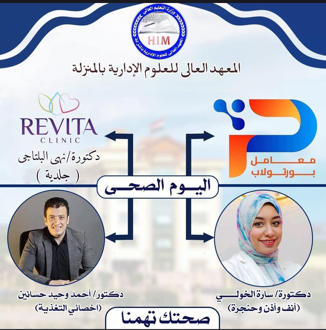 🔻إستعدوا لليوم الصحى بالمعهد العالى للعلوم الإدارية بالمنزلة