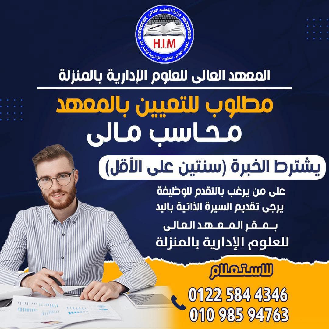 محاسب مالى للعمل بالإدارة المالية بالمعهد .