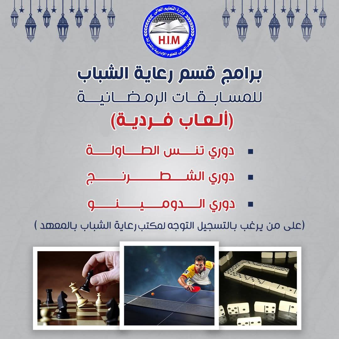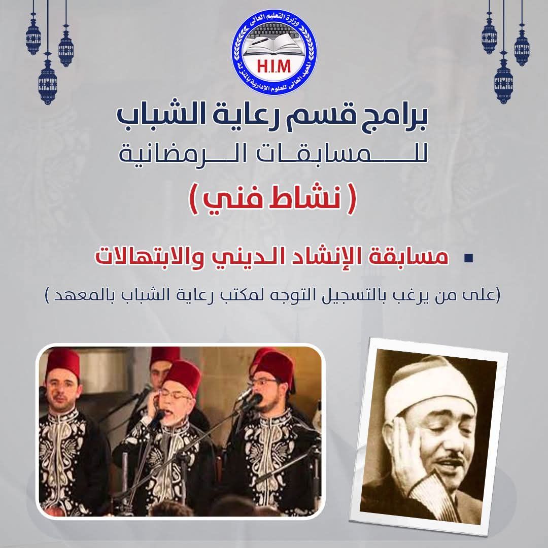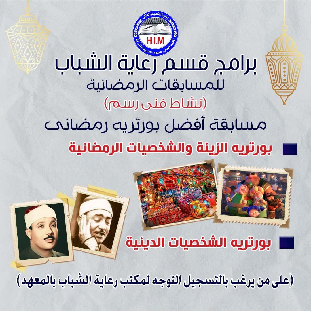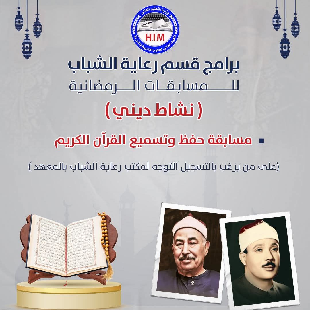يعلن قسم رعاية الشباب بالمعهد عن بدء التقديم لبرامج المسابقات الرمضانية