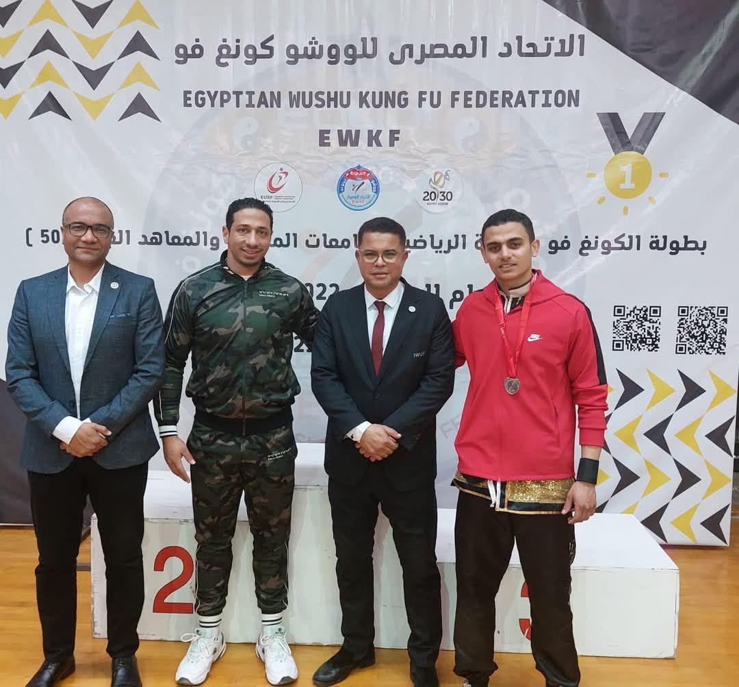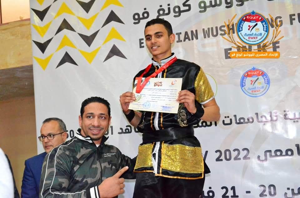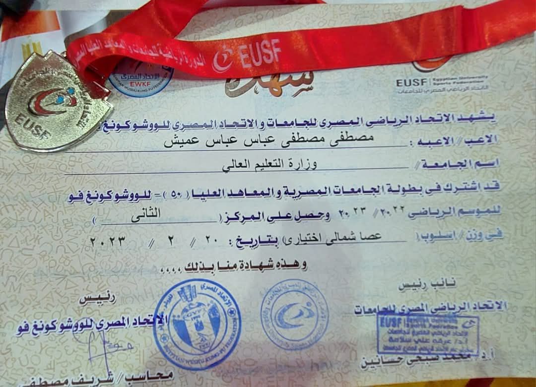 بمناسبة حصوله على المركز الثاني 🥈والميداليا الفضية 🥈في بطولة الجامعات والمعاهد المصرية🇪🇬 للكونغ فو 🤼 الدورة رقم (50) للعام الجامعى (( 2022-2023 )) 👌والتي اقيمت امس في الصالة المغطاة بجامعة القاهرة 📍